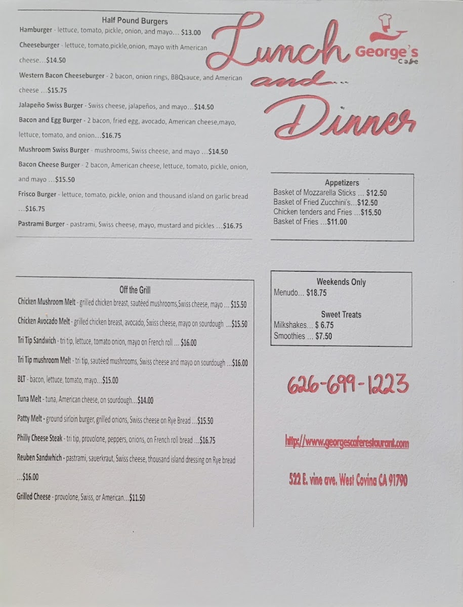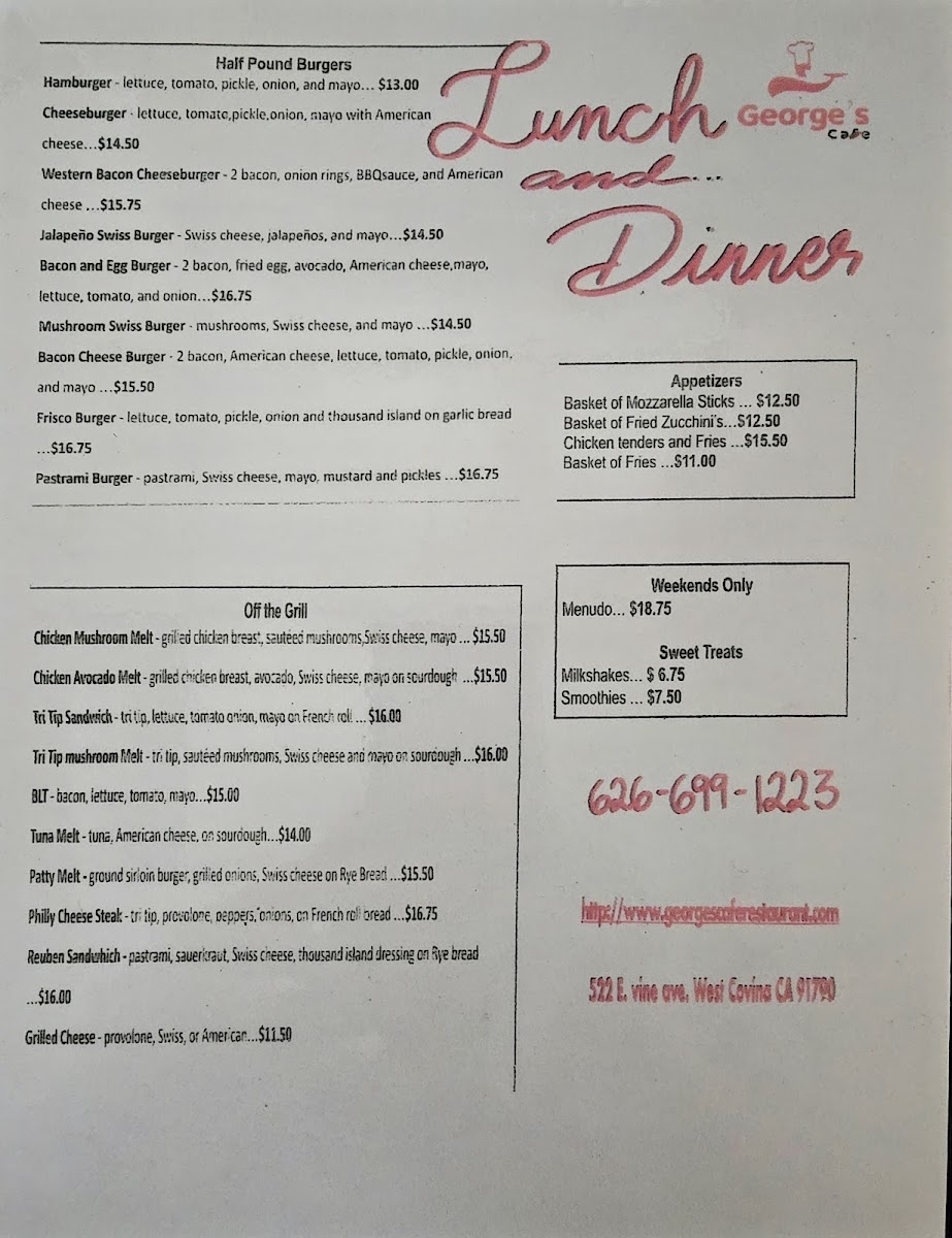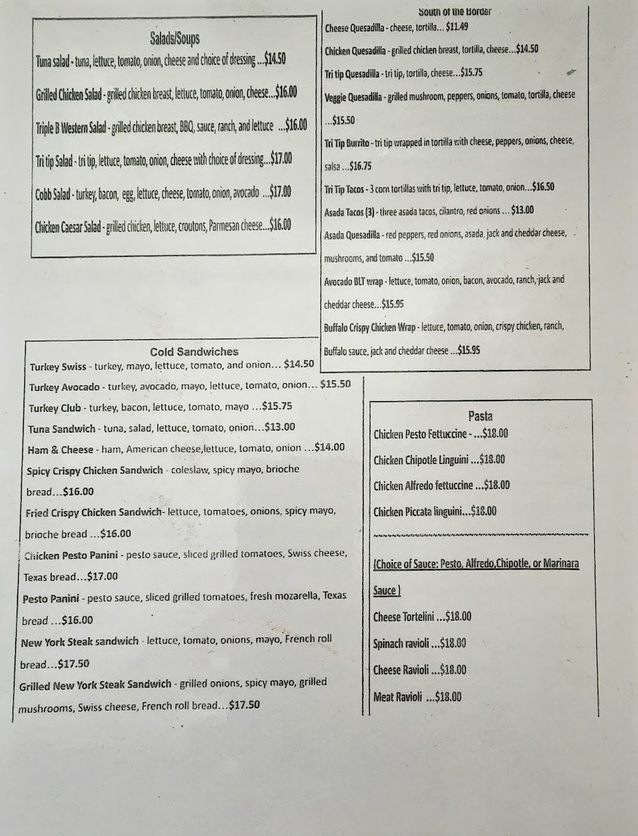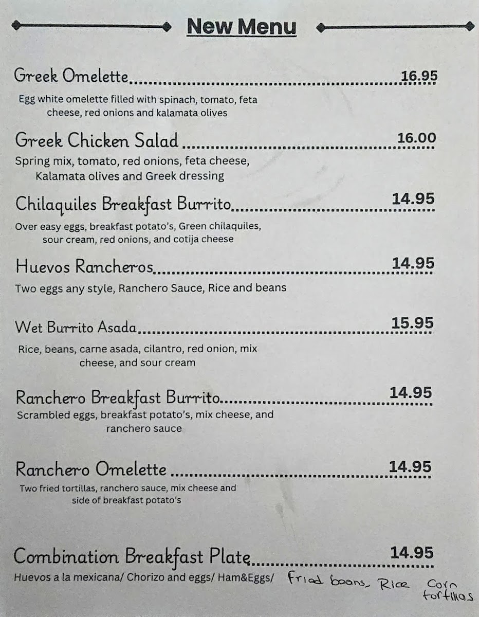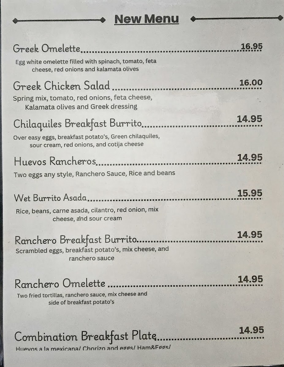 The menu features a variety of options organized into distinct categories, suitable for different times of the day and dining preferences.