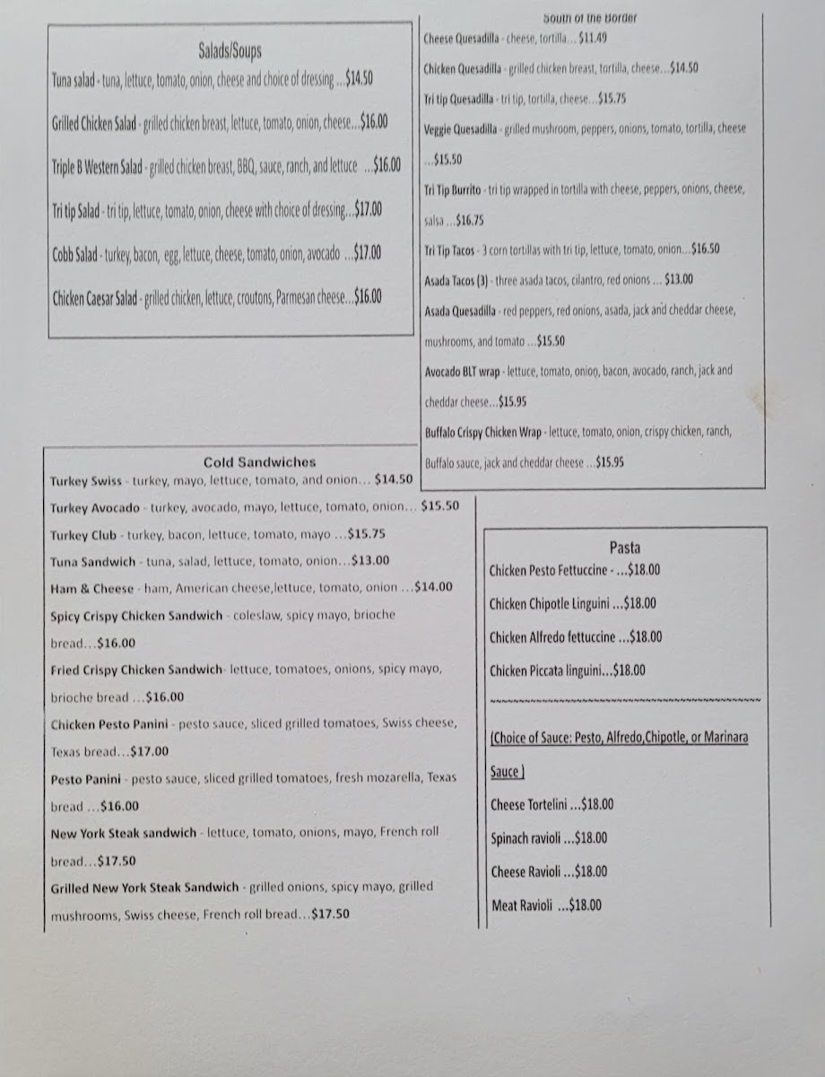 Lunch Items focus on sandwiches and wraps, including hamburgers with traditional toppings, grilled cheese, tuna sandwiches, BLT wraps, and tuna melts. These selections provide straightforward, casual meal choices suitable for midday dining.